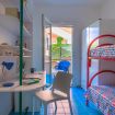 L’ appartamento può ospitare fino a dieci persone, quindi adatto a famiglie numerose, o gruppi di amici. È composto da 5 vani di cui due camere da letto matrimoniali con ventilatore a pale al tetto due camerette con letti a castello, due bagni, con doccia e un ampio soggiorno con TV, divano letto matrimoniale, tavolo con sedie, angolo cottura e climatizzatore. Tutte le finestre delle camere da letto hanno le zanzariere.